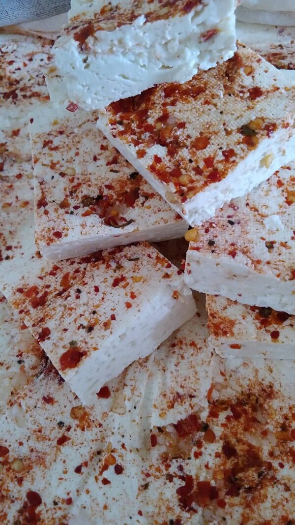 Mladi kozji sir sa ljutom tucanom paprikom i belim lukom 500gr, gazdinstvo Topalović